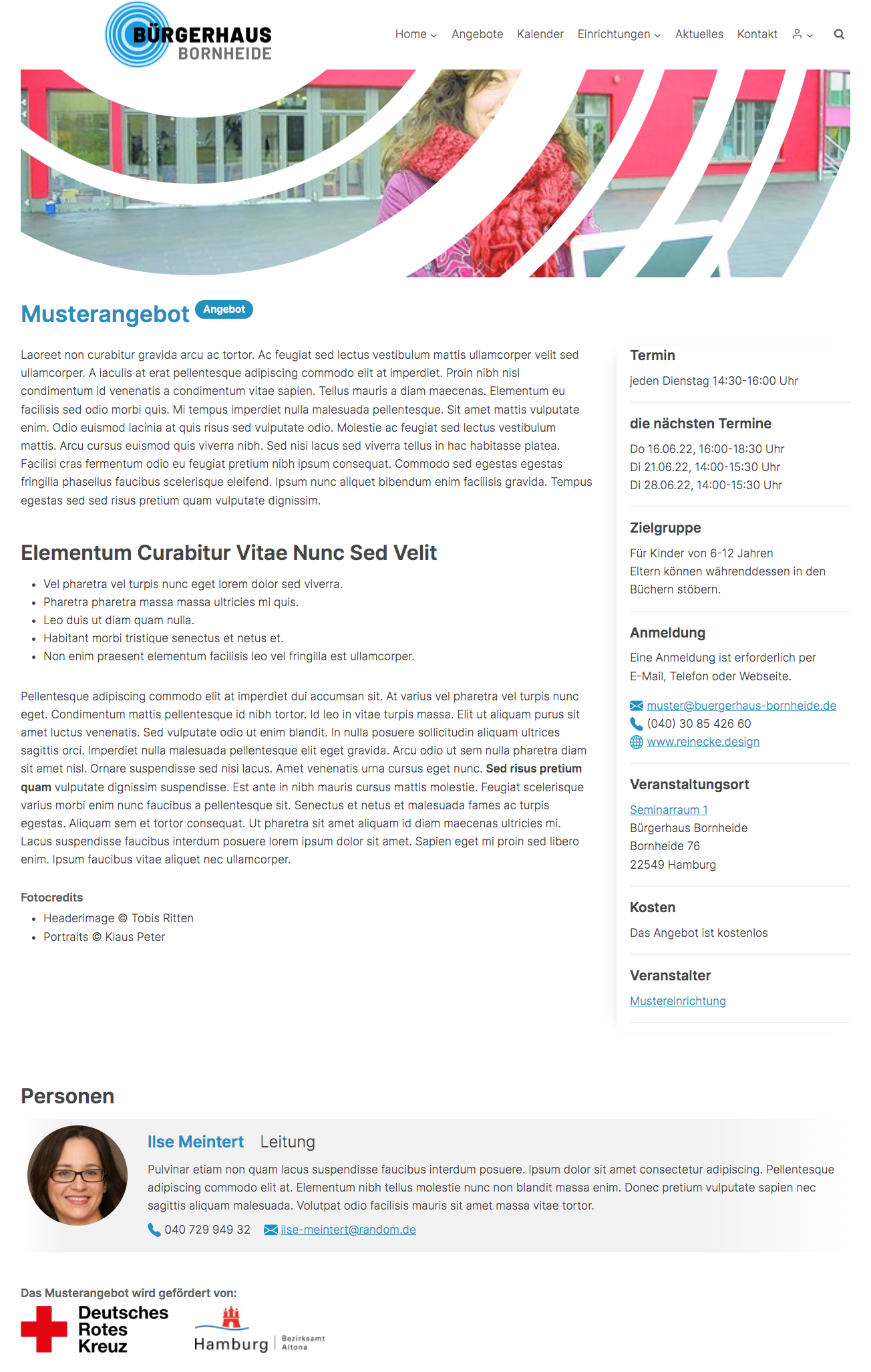 Dies ist das Formular, um Angebote für die Webseiten buergerhaus-bornheide.de und/oder osdorfer-born.de einzureichen. Schauen Sie sich vor dem Ausfüllen das Muster-Angebot an, um die Felder richtig einzuordnen. Das absenden des Formulare bedarf keiner Vollständigkeit, ausser der mit * gekennzeichneten Felder. Dieses Formular dient der Erstaufnahme des Angebotes, füllen Sie es so gut wie möglich aus. Für zusätzliche Informationen, Änderungen oder Dateianhänge nutzen Sie am besten die Antwort Email, die Sie nach Absenden dieses Formulars erhalten. Das Formular zum Einreichen einer Einrichtung finden sie hier.